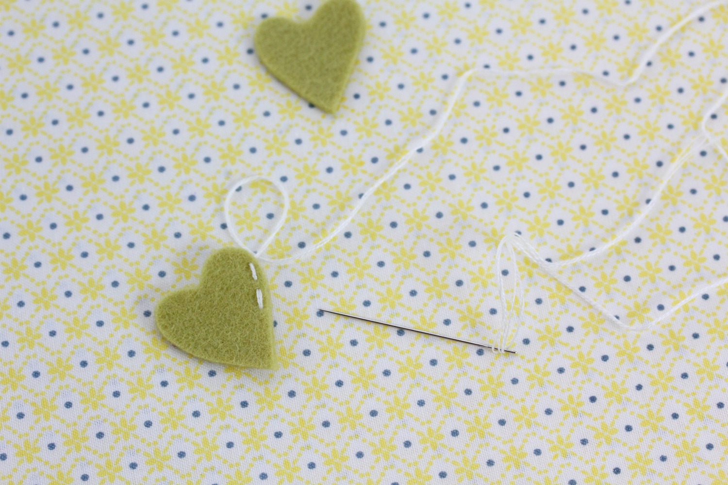 Stitch a running stitch along the perimeter of the heart. It is the simplest stitch – just up and down through the felt.